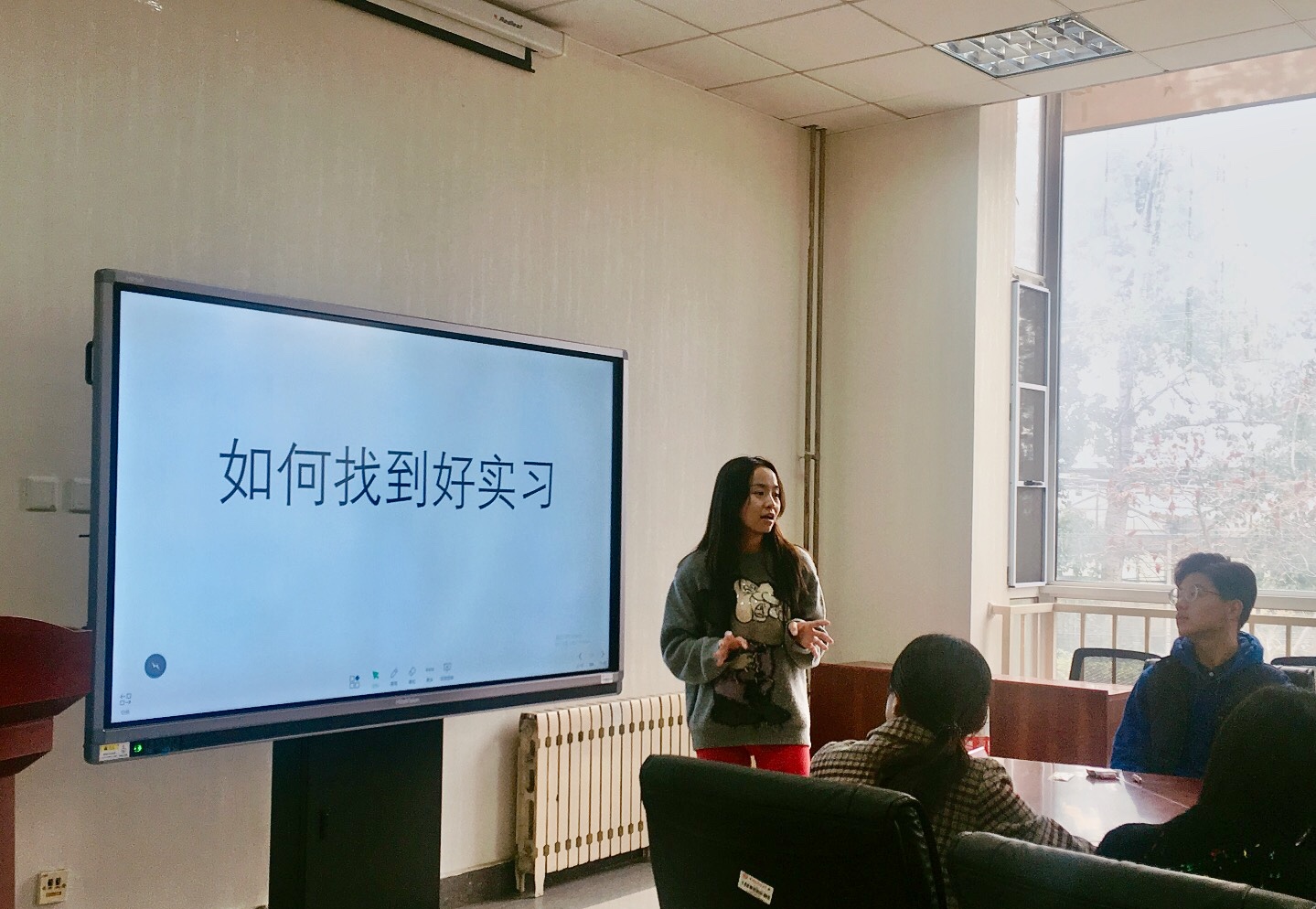 首先,杨澜以简历的撰写为题和大家进行交流,简洁易懂的说明了简历所包含的内容以及在个人技能、荣誉及实习经历上怎样进行描述的取舍和亮点的突出表达,并且建议同学们多次推敲并修改个人简历,用恰当的言辞来细化自己的阅历,在投递简历时要注意对方的体验感和第一印象,尽量使对方意识到自己渴望到其公司。然后,杨澜就如何挑选适合自己的公司向同学们提出了自己的看法:投递前要去研究企业的喜好,搜索好相关的职业信息,尽力去拓宽眼界,找到真的适合你的岗位,尽自己可能占有更多信息,尽量多看,在此基础上理性地分析,不要只在意眼前,要长远地看问题。经过近一个小时的讲解,同学们收获了许多实用的求职经验。
