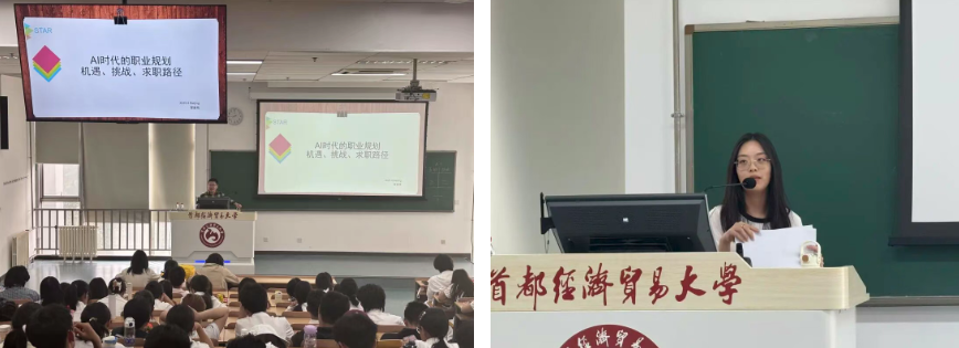 “劳”的实践聚焦社会责任与担当,引导新生在服务中实现自我价值。9月26日下午,北京艾沐帆教育咨询有限公司总经理管富铭为新生开展生涯规划启航讲座。讲座中,管富铭总经理不仅结合行业发展趋势,为新生解析职业规划的核心逻辑与实践路径,更通过分享企业参与社会公益服务、助力青年成长的案例,强调“劳动创造价值、责任成就未来”的理念,引导新生认识到职业发展与社会责任的紧密关联,鼓励新生在未来的学习与实践中,以劳动践行担当,在服务他人、贡献社会的过程中找准自我定位,实现个人价值与社会价值的统一。26日下午,“创客中心分享讲座”走进博学楼阶梯教室10,学校就业指导中心兼职辅导员潘玉晗围绕新生成长与发展需求展开,既详细解读就业择业的市场趋势、职业规划方法与求职技巧,帮助新生建立清晰的职业认知;又全面介绍创客中心各类比赛竞赛的主题方向、参与流程及创新要求,鼓励新生将审美素养与实践创新结合,在竞赛中探索专业之美、展现创新活力。