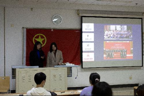 首先,由宋雪儿、朱芊逸同学向大家介绍了她们作为庆祝活动志愿者在宋家庄地铁站的服务历程与心得。两位向大家介绍了志愿服务的时间安排、具体工作、组长经历以及此次志愿服务所传达的志愿服务精神。