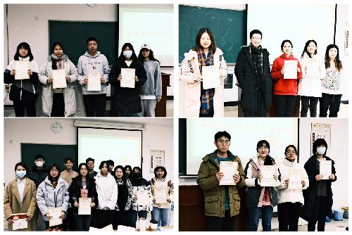 在各部门总监做完工作总结后,杨迪为大家公布了优秀经理奖、最佳贡献奖、积极参与奖的评奖规则。各部门总监为每位获奖的同学颁奖,合照。