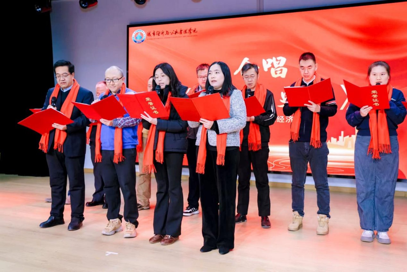 城市经济管理系教职工的合唱《年代歌曲串烧》唤起集体记忆;朗诵《智慧之城,未来之梦》则结合学院专业特色,描绘了城市发展的美好蓝图,彰显城公人的责任与担当。
