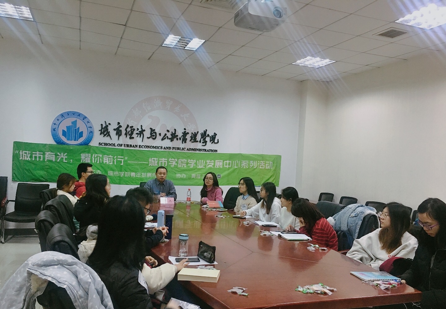 2019年12月5日晚上,在博纳楼213会议室,城市学院学业发展中心举办的“教授面对面”品牌工作坊活动。学院副院长、教授张杰教授与通过学院学生工作官方微信平台“青橙部落”报名参加此次活动的30名同学围绕 “学习——人生路上的难事”共同进行了探讨。