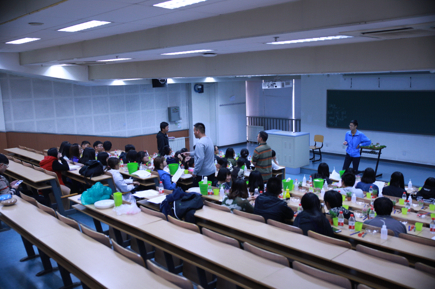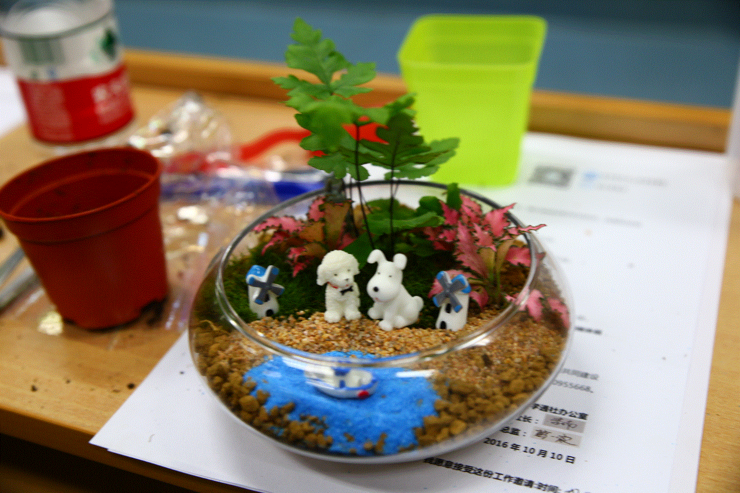 同学们认真制作多肉微景观