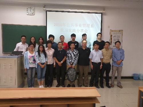 2016年9月21日下午,公共事业管理系举办了2016年暑期实习实践分享会,来自2013级和2014级公共事业管理班的同学畅谈了实习实践的收获和感受,城市学院张杰副院长和公共事业管理系的九位老师出席会议。