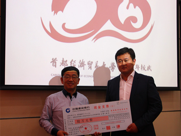 学院知名校友山东欧泰隆重工有限公司法人代表、2005级行政管理专业韩志光继为学院设立10万元“奥力特励志奖学金”后,值此校庆60周年之际,再次向学院捐赠了六万元人民币“人才培养专项基金”,用以资助学院学生开展社会实践活动。发言中,韩志光不仅表达了对学院培养的感谢,也对学校和学院近年来的发展表示了肯定。捐赠仪式的尾声,韩志光与学院相关领导及行管系教师进行合影留念。