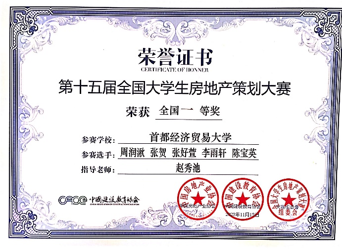 2023年11月12日,“国贸地产杯第十五届全国大学生房地产策划大赛”总决赛在华侨大学厦门校区圆满落幕。大赛由中国房地产业协会指导,中国建设教育协会主办。大赛旨在促进产教融合、校企合作,创新高校人才培养机制,促进教育链、人才链与产业链、创新链有机衔接,推动房地产行业“产、学、研、用 ”协同发展,提升大学生创新实践能力。大赛5月份开始启动,吸引了12000名大学生报名,经过初赛、复赛层层选拔,最终有120所高校、170支队伍参加了总决赛。我校参赛团队从市场调研、项目定位,到项目规划、产品设计、经济测算、营销策略、项目运营、物业服务等多个角度为赛题地块设计了全流程的策划方案,得到了现场评委的一致好评,最终获得了1个全国一等奖、2个全国三等奖,若干华北区一等奖、二等奖的好成绩。部分获奖同学还通过培训获得了“房地产策划员”证书。