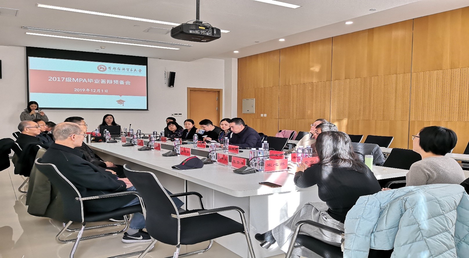 12月1日上午,2017级MPA硕士研究生学位论文答辩会在博远楼顺利举行。来自国家市场监督管理总局原企业监督管理局巡视员徐晓东,北京市政协科技委主任申建军,北京市城市管理委员会副主任李如刚,北京市丰台区经济和信息化委员会主任吴神赋,北京印刷学院原校长曲德森教授,中国政法大学行政管理研究所所长刘俊生教授等校外专家和我校部分MPA导师参加了答辩。