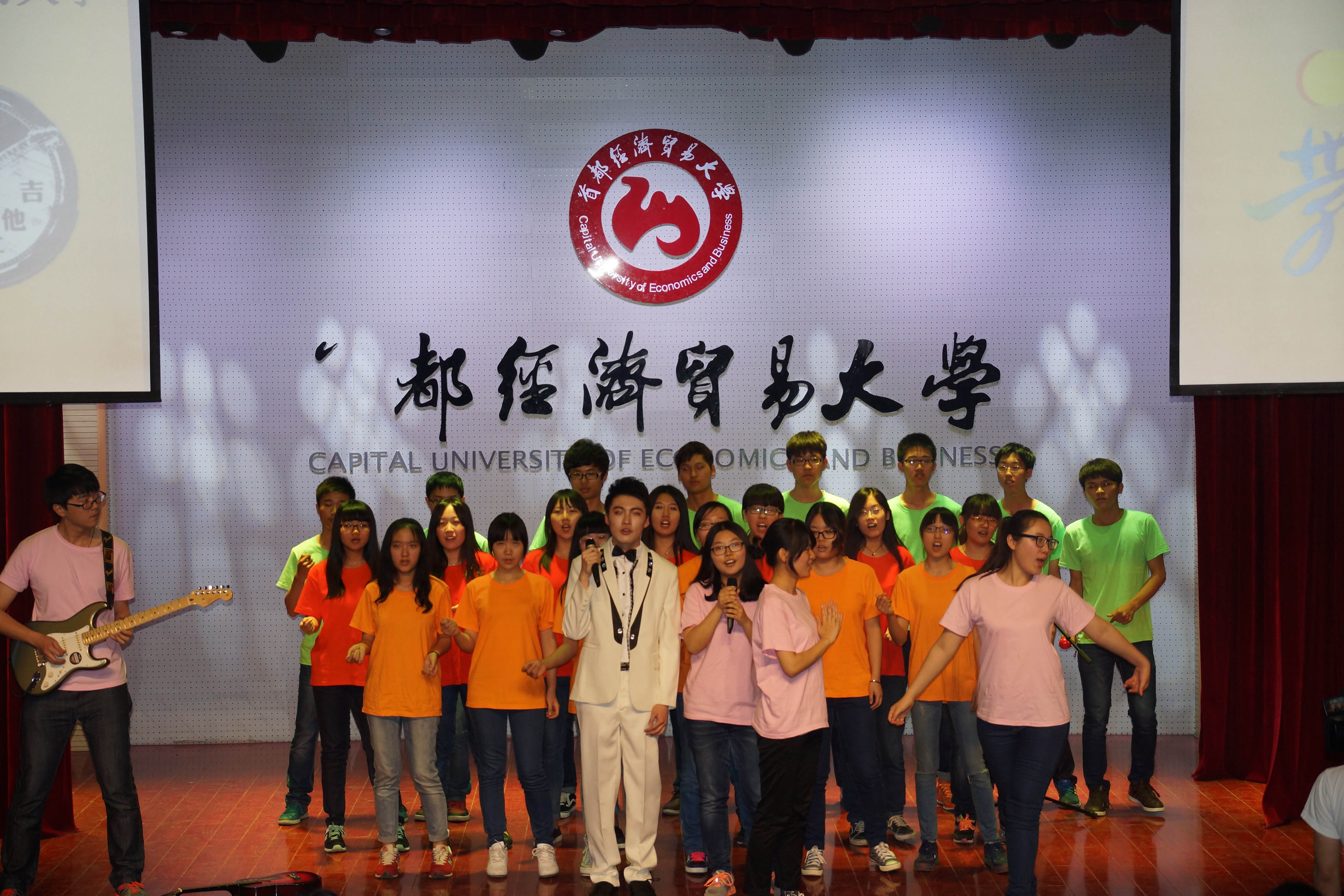 此次参赛的为大一的同学们,以班级为单位演出节目。一班以一首《一生有你》率先亮相,整齐的声音,悠扬的曲调以及最后一句全体喊出的城院我们爱你收获全场掌声。接着,不甘示弱的二班用他们自己选择的半袖搭配舞台灯光,着实让所有人眼前一亮,并以一首《仰望星空》获得一致好评。三班同学们则以一人领唱,其余人在副歌合唱的形式为我们带来了《和你一样》,领唱同学棒棒的唱功以及全班的配合让评委们也打出了不低的分数。四班以一个同学的独白开启整个表演的大幕。靓丽的衣服,多样的形式,让我们看到了青春的飞扬。每个人都是《世界上唯一的花》。 五班在四个领唱的带领下,以一首《天使》让在座的每一位陶醉其中。就像歌中唱到的你就是我的天使。六班以小情景剧开头,回忆开学以来的点点滴滴。红红火火的衣服和扇子加之合唱的气势,真的让我们感受到《相亲相爱城院人》。 最后,国际班用《梦想天空分外蓝》带来了最完美的收官。情景剧穿插歌曲之中,更有长笛大神掌控全场。虽说人数少,可是表演绝对毫不逊色。同样,他们也收获了全场的掌声。