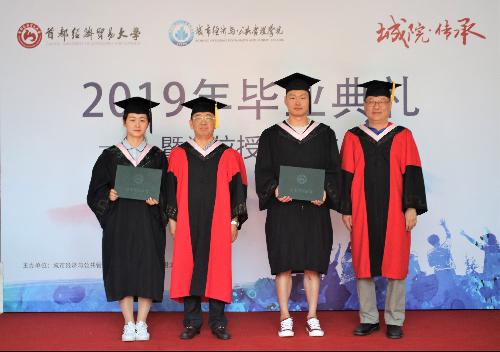 2019年7月4日上午,在校级毕业典礼结束后,学院在城市运行与应急管理实验中心隆重举行2019年“城院·传承”研究生学位授予仪式。五十余名研究生获得学位。院领导、导师代表和全体研究生毕业生共同出席仪式。 学院领导为学生授予学位 老师与毕业生合影留念 在学院党委副书记杨曦的主持下,学位授予仪式正式开始。各班班长代表全班诉说了同学们在校期间的点滴回忆,祝愿大家前程似锦。随后,各班同学两两一组,踏上红毯,接受院长张国山教授和书记王德起教授的拨穗礼,正式拿到自己的学位。在授予学位的...