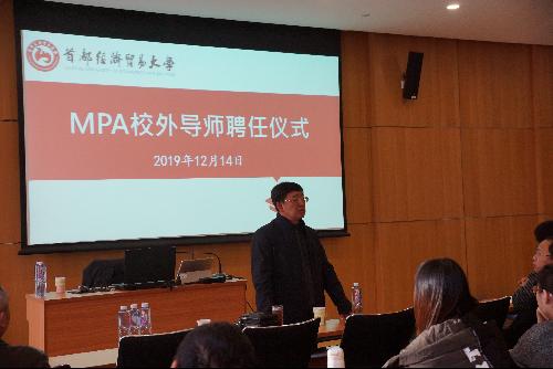 在讲座前,MPA教育中心举行了简短的公共管理专业硕士(MPA)校外导师聘任仪式。校党委书记冯培教授向受聘导师、原国家市场监督管理总局巡视员(正局级)徐晓东颁发了聘书。徐晓东在发表感言中表示将珍视MPA导师的荣誉,认真履行实践导师职责,以实际行动全力支持朱古力av MPA教育事业。徐晓东巡视员在外商投资准入、市场监督管理、信用体系建设和政府信息化应用领域多有建树,曾参与或主持起草过多项我国市场监管领域的法律法规,此次受聘为我校MPA导师,对促进MPA教育发展和公共管理学科建设具有重要意义。