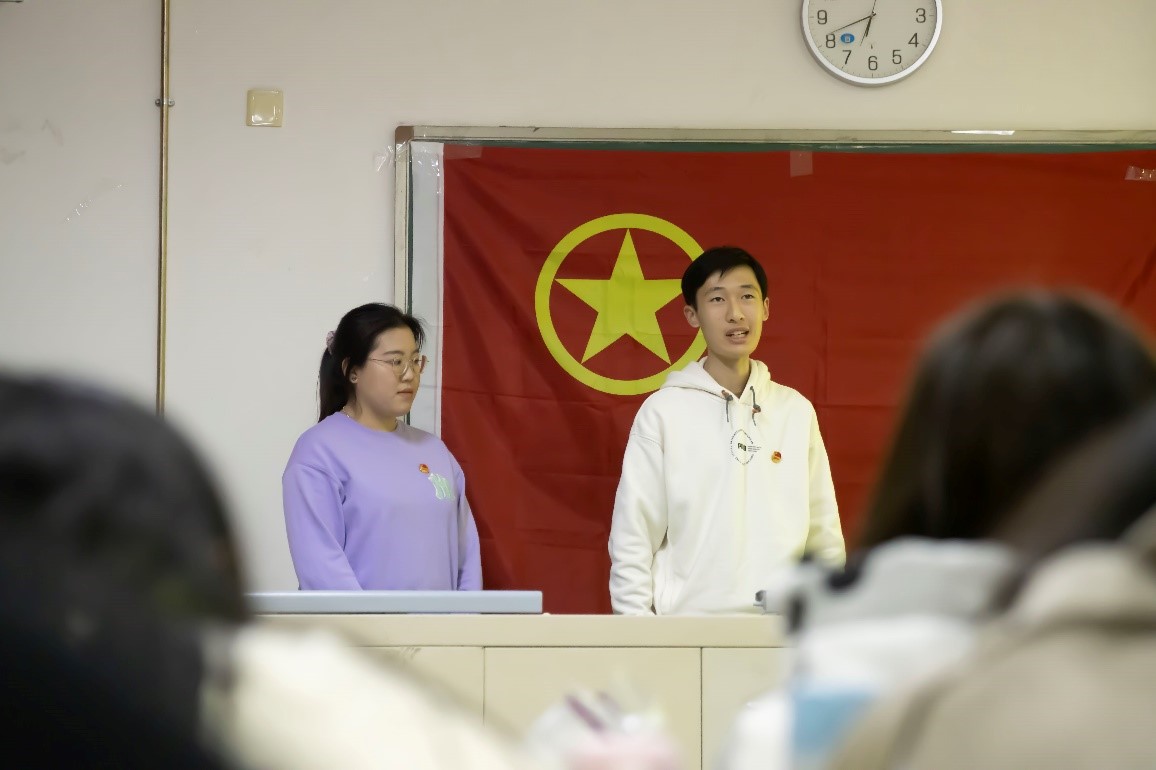 首先,由宋雪儿、朱芊逸同学向大家介绍了她们作为庆祝活动志愿者在宋家庄地铁站的服务历程与心得。两位向大家介绍了志愿服务的时间安排、具体工作、组长经历以及此次志愿服务所传达的志愿服务精神。
