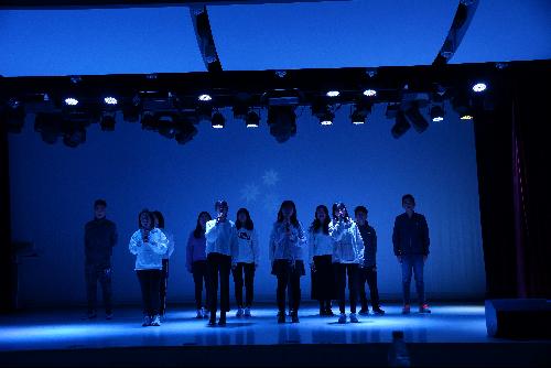 接下来,研究生会办公室的同学们带来《舞蹈串烧》,动感的音乐将晚会现场气氛带入高潮,引得观众阵阵掌声。随后,城市经济与战略管理专业的魏来为大家演唱歌曲《风吹麦浪》,动人的歌声将观众们带到了一个”远处蔚蓝天空下,涌动着金色的麦浪“的浪漫情境中,在挥舞着荧光棒的同时不自觉的跟着哼唱,气氛非常热烈。