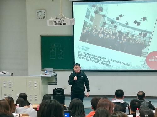紧接着潘娜老师邀请陈曦讲师跟同学们分享了报选行政管理的心路历程,陈曦讲师则言,行政管理的意义在于时刻铭记“胸怀天下,天下为公”,真正的行政管理人才不仅要关注贡献社会方面的大事,更需要从身边的点滴小事着眼、入手,这样才能真正的服务于社会。
