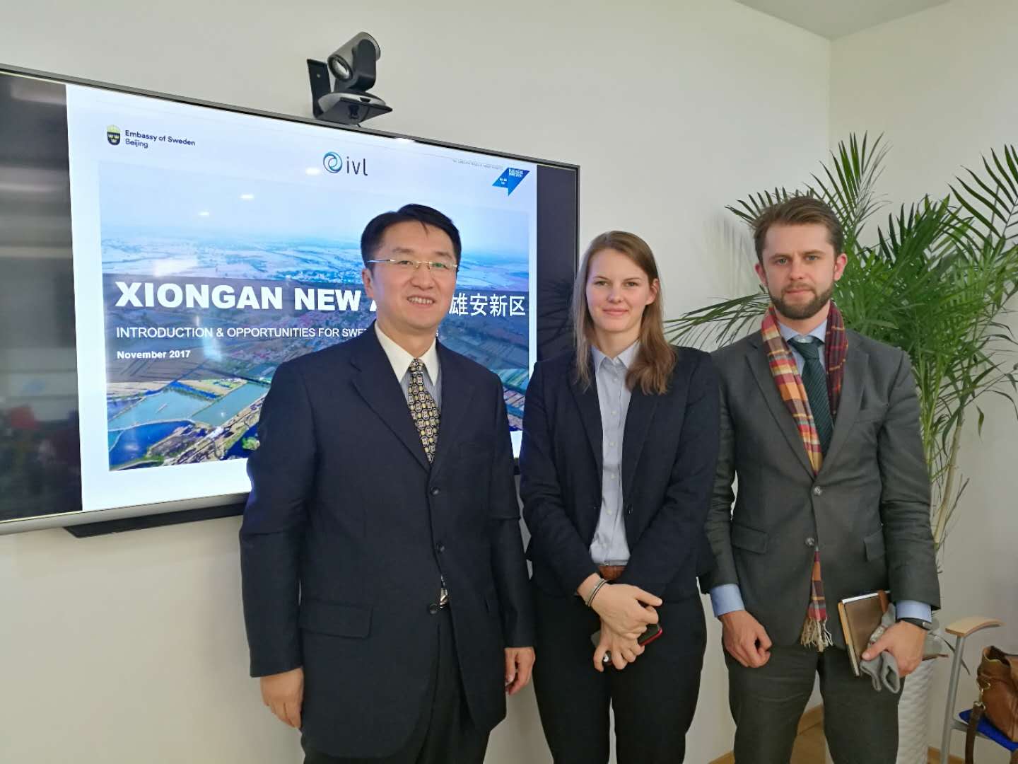 2017年11月10号下午两点,王晖老师来到瑞典贸易委员会办公室为瑞典驻华大使馆的使馆人员和瑞典在华公司的30多位工作人员讲解了雄安新区。首先瑞典驻华大使馆的环境官员马瑞英(Matilde Eng)和经济处企业社会责任中心主任尤丽莲(Lotta Liljelund)两位参赞先后致辞。接着瑞典贸易委员会中国区经理霍伦伟(David Hallgren)做了有关瑞典智慧城市平台的演讲。