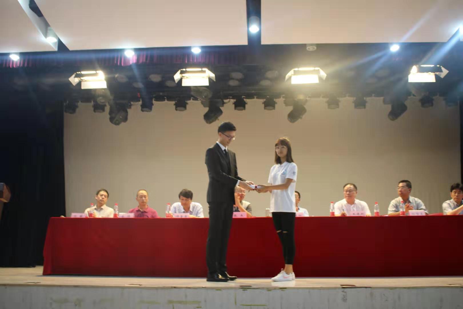 在校生代表向新生赠开学礼物