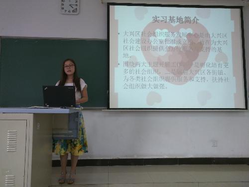 在学生分享环节,胡江羚分享了济南之行的收获,阎秦瑶、高城回顾了南京之行的感悟。张晨、贾紫雪、夏鹏和徐浩分别汇报了他们在北京协作者社会工作发展中心、大兴区社会组织服务中心、西城区睦邻社会工作事务所和丰台区乐助社会工作事务所的实习经历和体会。同学们表示,实习实践活动让他们深入基层,近距离了解公共组织的运作情况,帮助他们提升自主学习、主动策划、沟通交流、团结协作的能力。