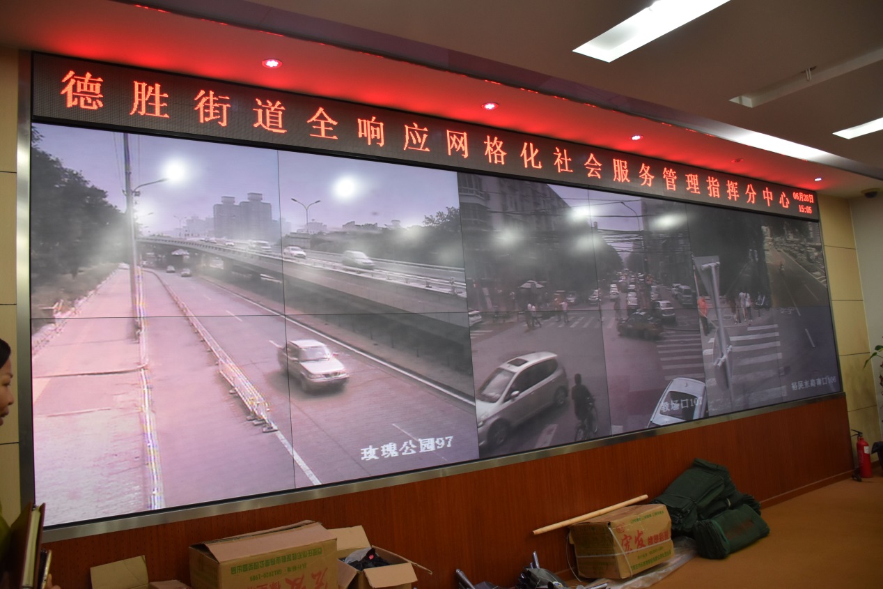 此次调研主要分为以下两个部分:第一部分是参加德胜街道办事处举办的街道管理工作座谈会。会上,办事处领导对单位所承担的工作做了具体的介绍,并耐心地回答了同学们提出的问题。第二部分是参观德胜街道全响应网格化社会服务管理指挥中心。工作人员热情地为同学们讲解了指挥中心的运行机制,并详细说明了指挥中心在基础设施建设与维护、数据提供、民生服务以及社会管理等方面的突出作用。