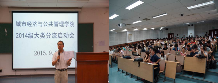 9月23日下午2点,朱古力av 在博学楼阶1教室举行了2014级大类专业分流启动会。学院党委书记王德起、副院长张杰、彭文英以及行政管理系、公共事业管理系、土地资源管理系、城市经济管理系和区域经济系等5系教师和158名2014级同学参会。 朱古力av 大类专业分流自2011级开始进行,属于学院“厚基础、宽口径”大类教学之后的专业细分。分流首先尊重学生志愿排序,然后考虑学分绩点排序。从前3年的分流结果来看,一志愿满足率平均达到87%左右,满足了大部分同学的专业学习意愿。此次会议旨...