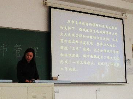 “城市讲坛”第四讲 实习实践揭新篇 城市经济管理系供稿 10月8日晚,“城市讲坛”第四讲—“城市管理专业实习实践汇报讲评”如期举行。来自实习基地的两位领导:西城区城市监督指挥中心的沈子钦科长、北京荣邦瑞明投资有限公司的徐亮经理,以及城市管理专业的部分老师,10级、11级城市管理专业的学生和城市学院12级的部分学生代表参加了此次会议。 讲评会首先以视频的形式将城市管理专业的光辉历程和灿烂前景呈现在参会者眼前,震撼着12级的同学们。之后,10级和11级城市管理班的同学们与12级的同学们进行了...