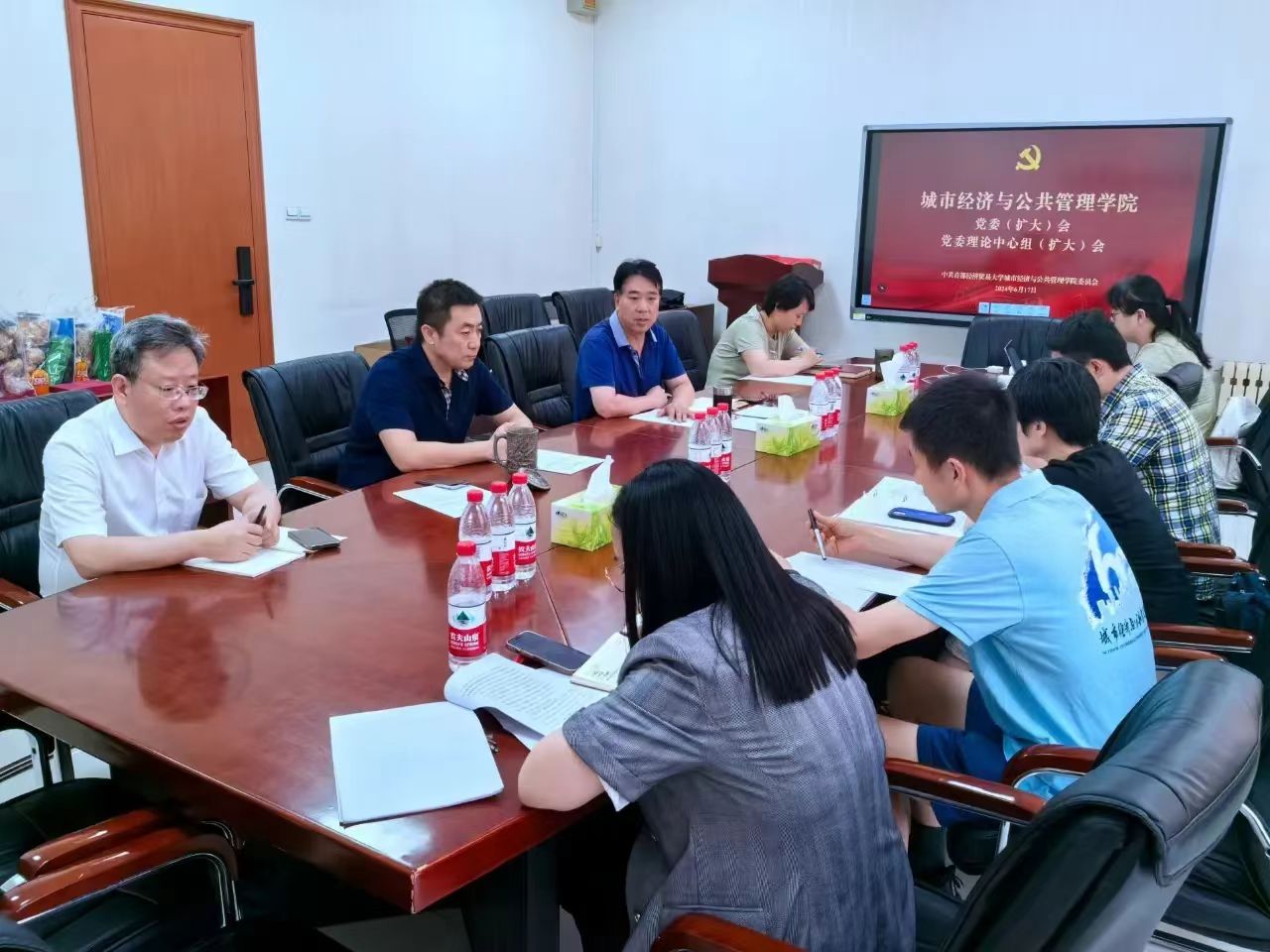6月17日,朱古力av 召开党委(扩大)会,交流研讨党建与事业深度融合发展。党委书记刘智勇,党委副书记、院长麻宝斌,党委副书记韩静,党委委员、特大城市经济社会发展研究院执行院长叶堂林,党委委员于云鹏,教师党支部书记黄衔铭、邬晓霞、张昕、崔高鹏参加会议。会议由刘智勇主持。 刘智勇首先通报了学校2024年度党委理论学习中心组重点学习内容安排及教职工政治理论学习重点内容安排,提出学院党委、各党支部要始终把政治学习放在首位,充分认识加强政治理论学习的重要性,通过深化学习,不断提...