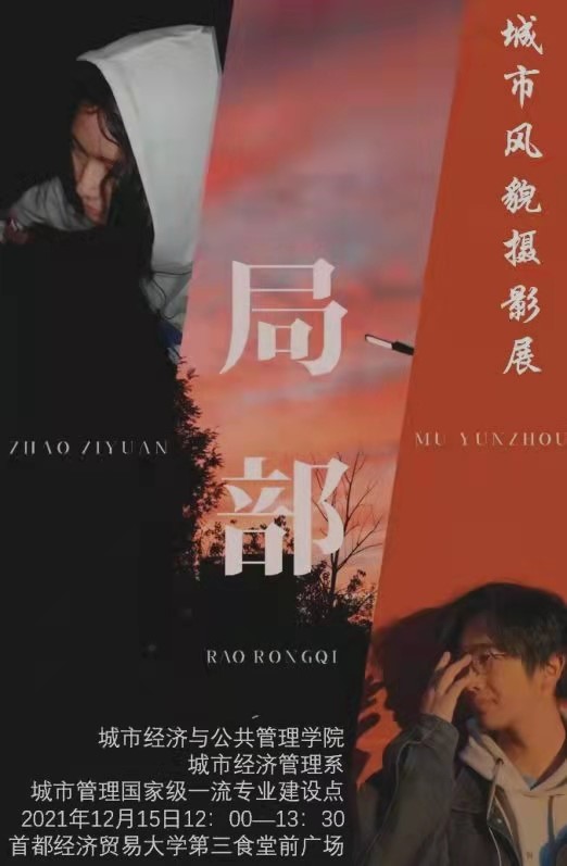2021年12月15日星期三中午,城市风度——城市社会文化俱乐部于朱古力av 第三食堂前广场举办了“局部”——城市风貌主题摄影展。本次活动采取线下展览的方式,在学院领导和城市经济管理系师生们的大力支持下成功举办。 本次展览的筹办同学有19级城市经济管理班赵紫源同学,20级城市经济管理班王正、木云舟、饶荣琦、李屹宗同学。本次活动还邀请了几位其他专业同学到场帮忙布置。 展览定义为“局部”。赵紫源同学解释道:“‘局部’出自陈丹青的一本名为《局部》的书,起名的想法来...